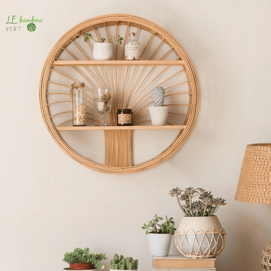 Sa conception murale offre une solution pratique sans nécessiter de perçage, préservant ainsi l'intégrité de vos murs. Idéal pour organiser vos objets dans le salon, ce support en bambou double tiers combine fonctionnalité et élégance.
