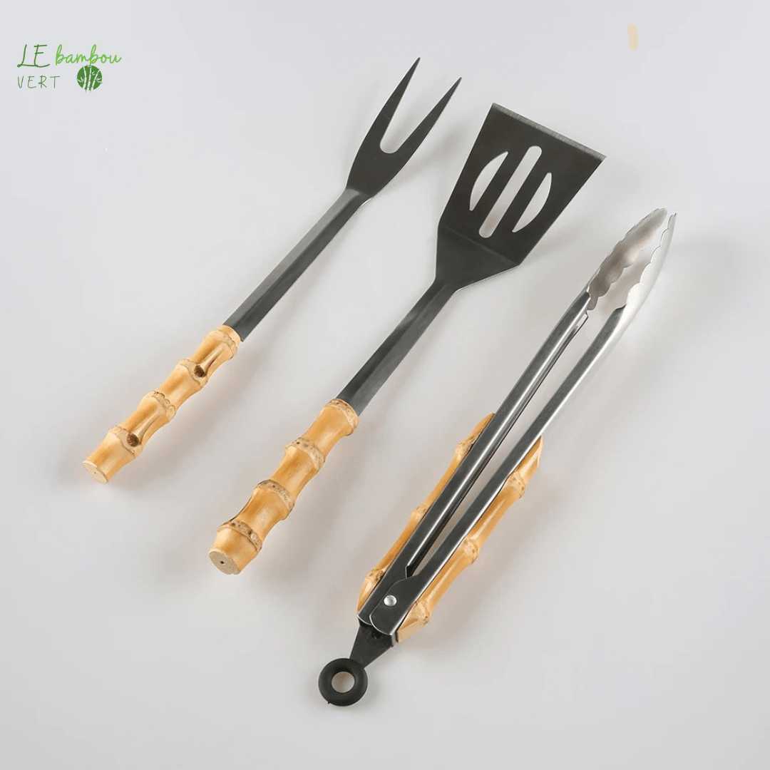 Ensemble d'accessoires de Barbecue en acier et bambou 3pcs