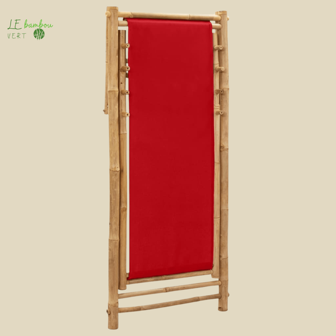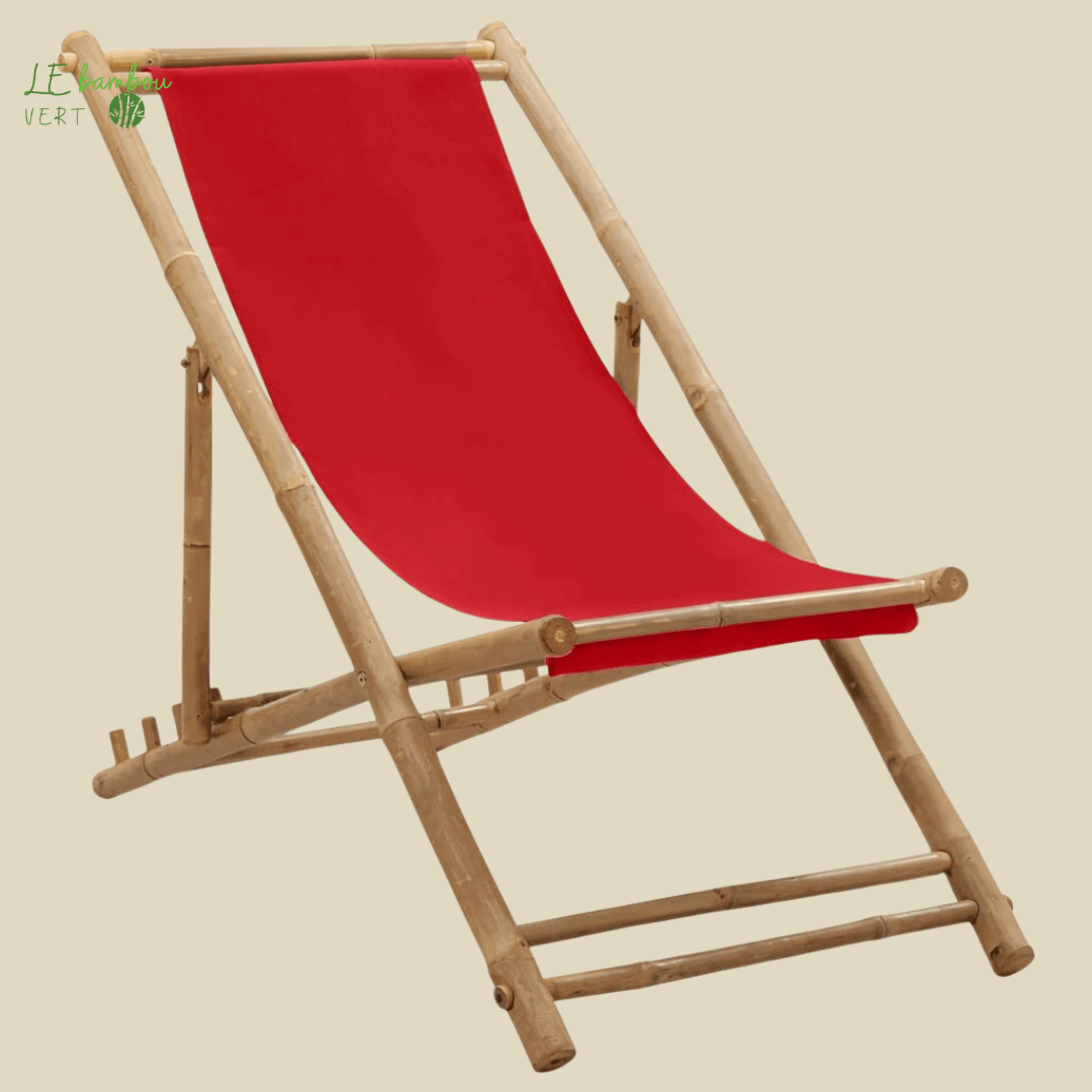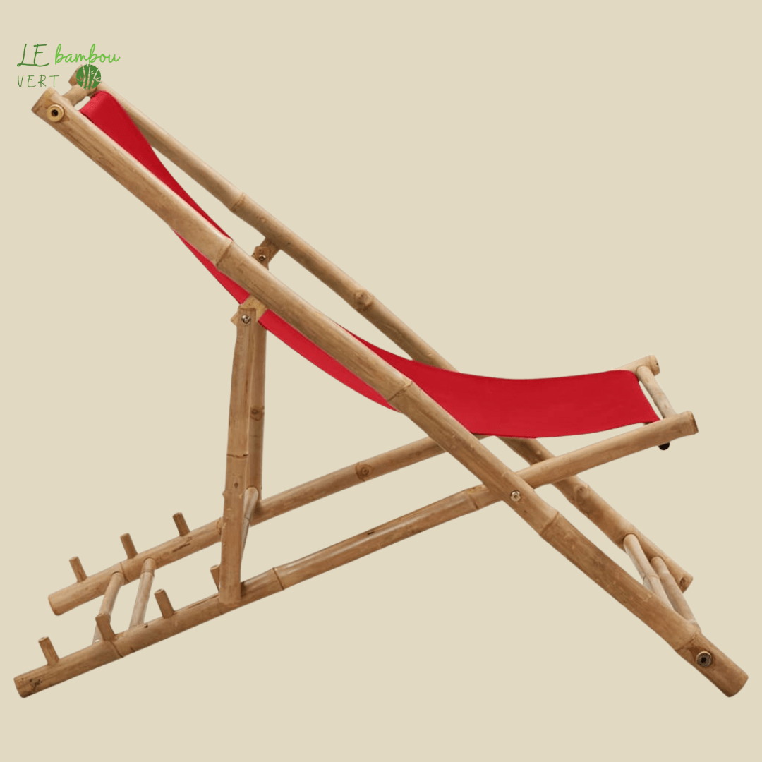 Fabriquée en bambou de haute qualité, cette chaise résiste aux intempéries et offre une durabilité exceptionnelle. La toile en polyester assure un confort optimal lors de votre séance de détente.