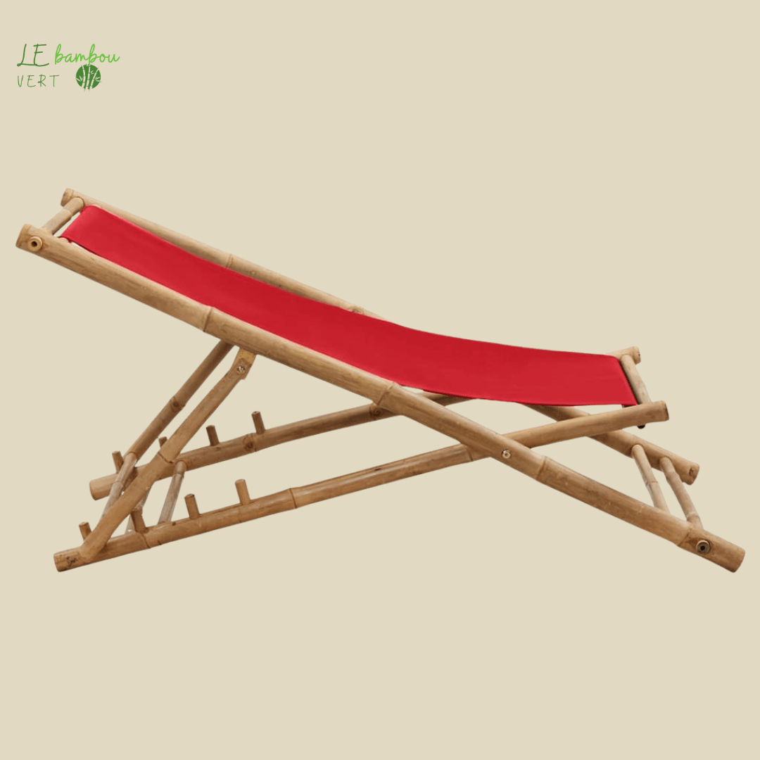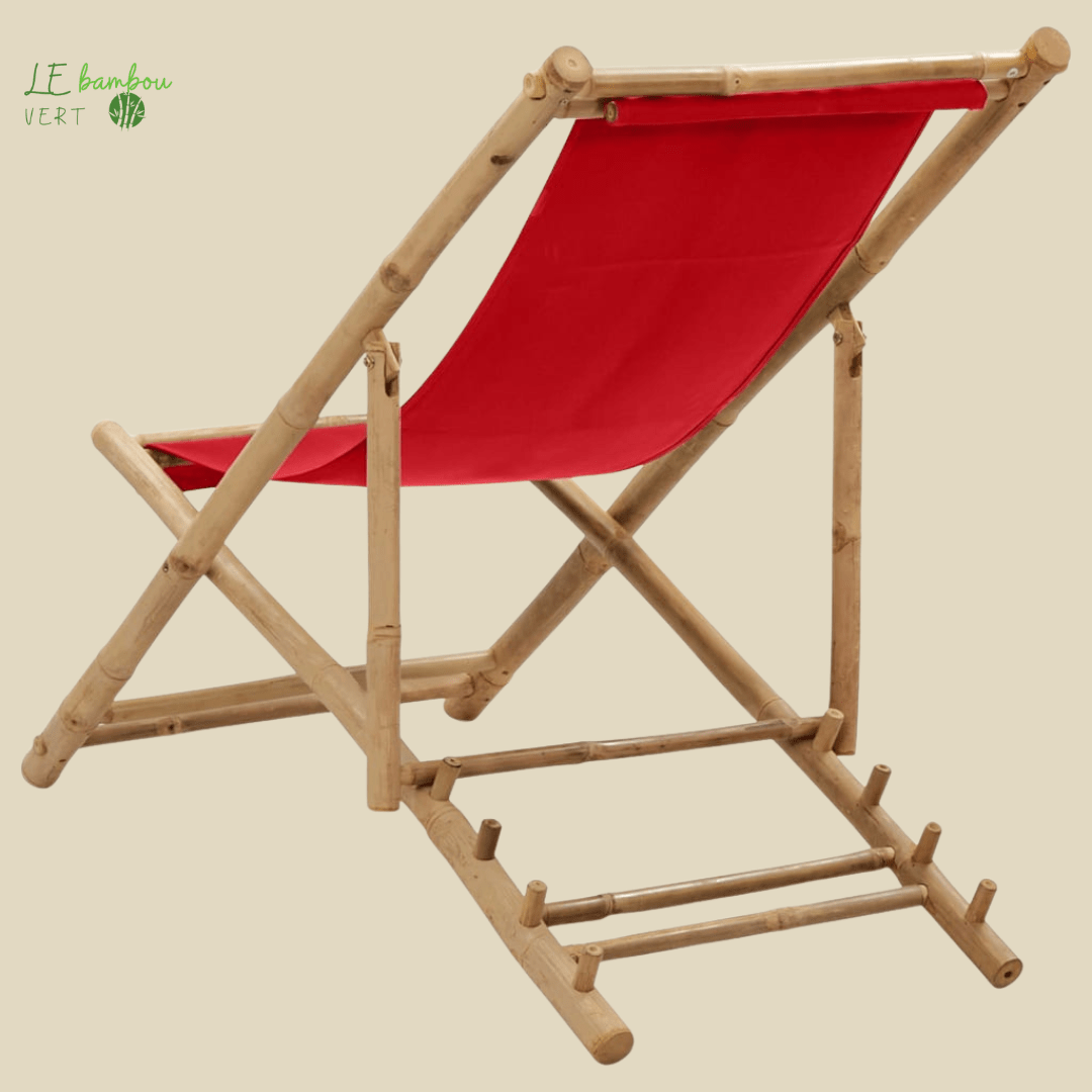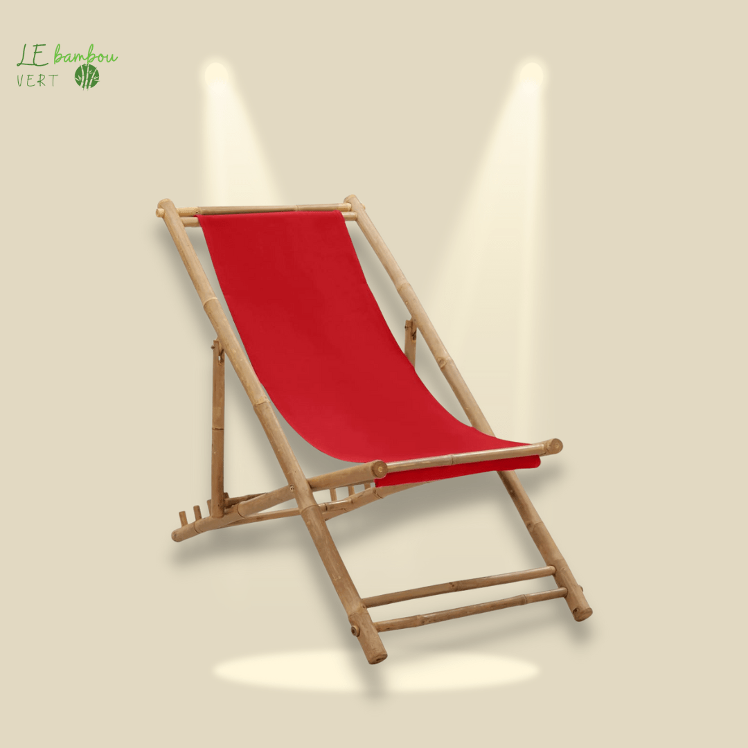 Fabriquée en bambou de haute qualité, cette chaise résiste aux intempéries et offre une durabilité exceptionnelle. La toile en polyester assure un confort optimal lors de votre séance de détente.