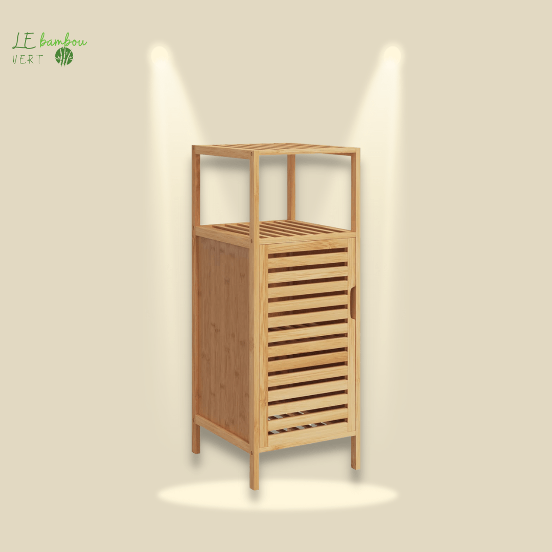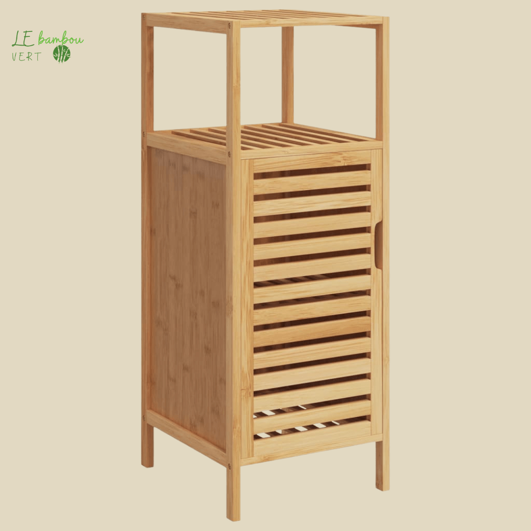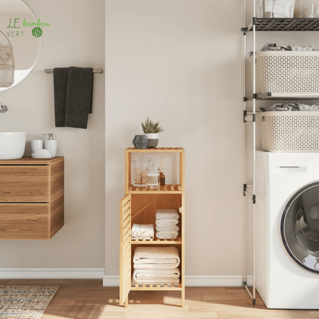 Optimisez votre espace de salle de bain avec notre élégante armoire en bambou, ajoutant une touche de style naturel à votre décor.