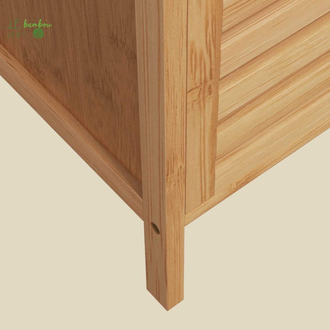 1. Matériau Durable: Fabriquée en bambou, connu pour sa durabilité et sa résistance, cette armoire assure une longue durée de vie tout en préservant l'environnement. Le traitement au vernis protège le bois des rayures et de l'humidité, garantissant une qualité durable.