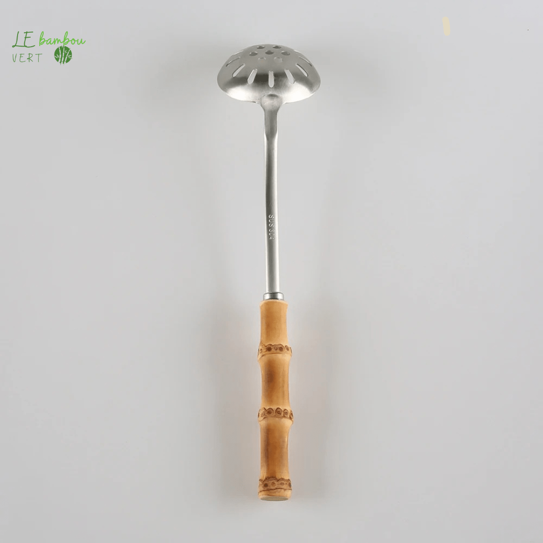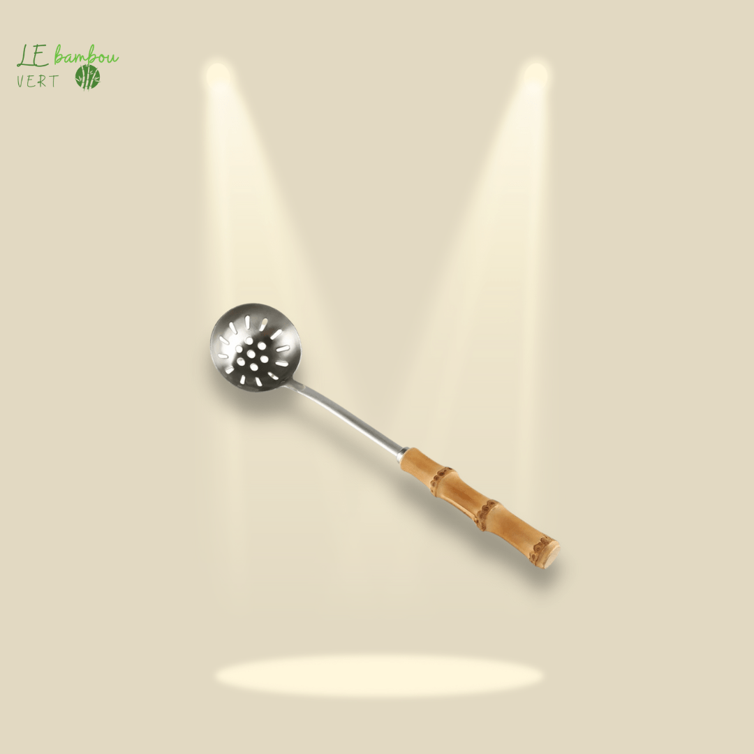 Découvrez l'art unique des louches à soupe filtrante en racines de bambou. Chaque pièce, façonnée à la main par des artisans qualifiés, offre une authenticité inégalée.