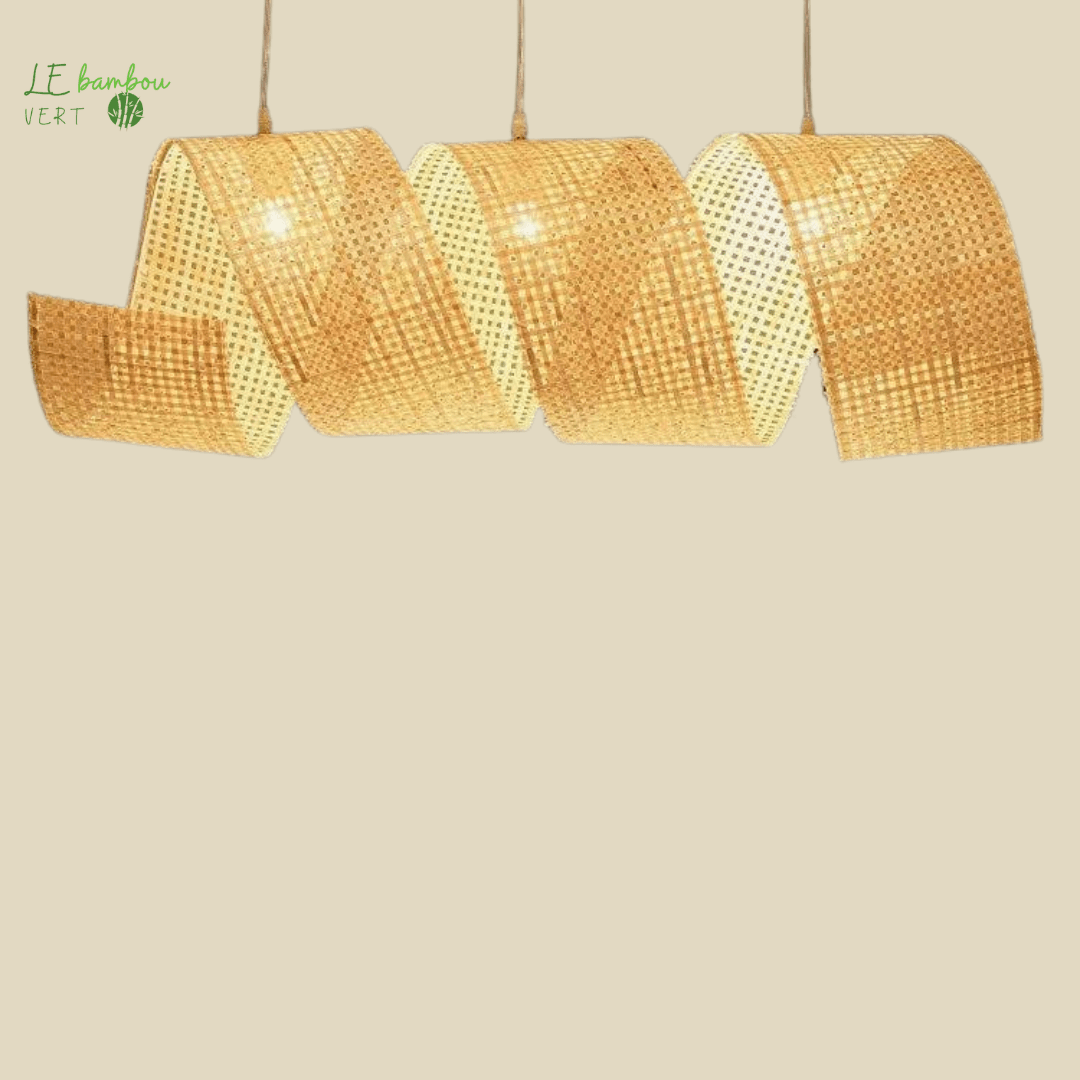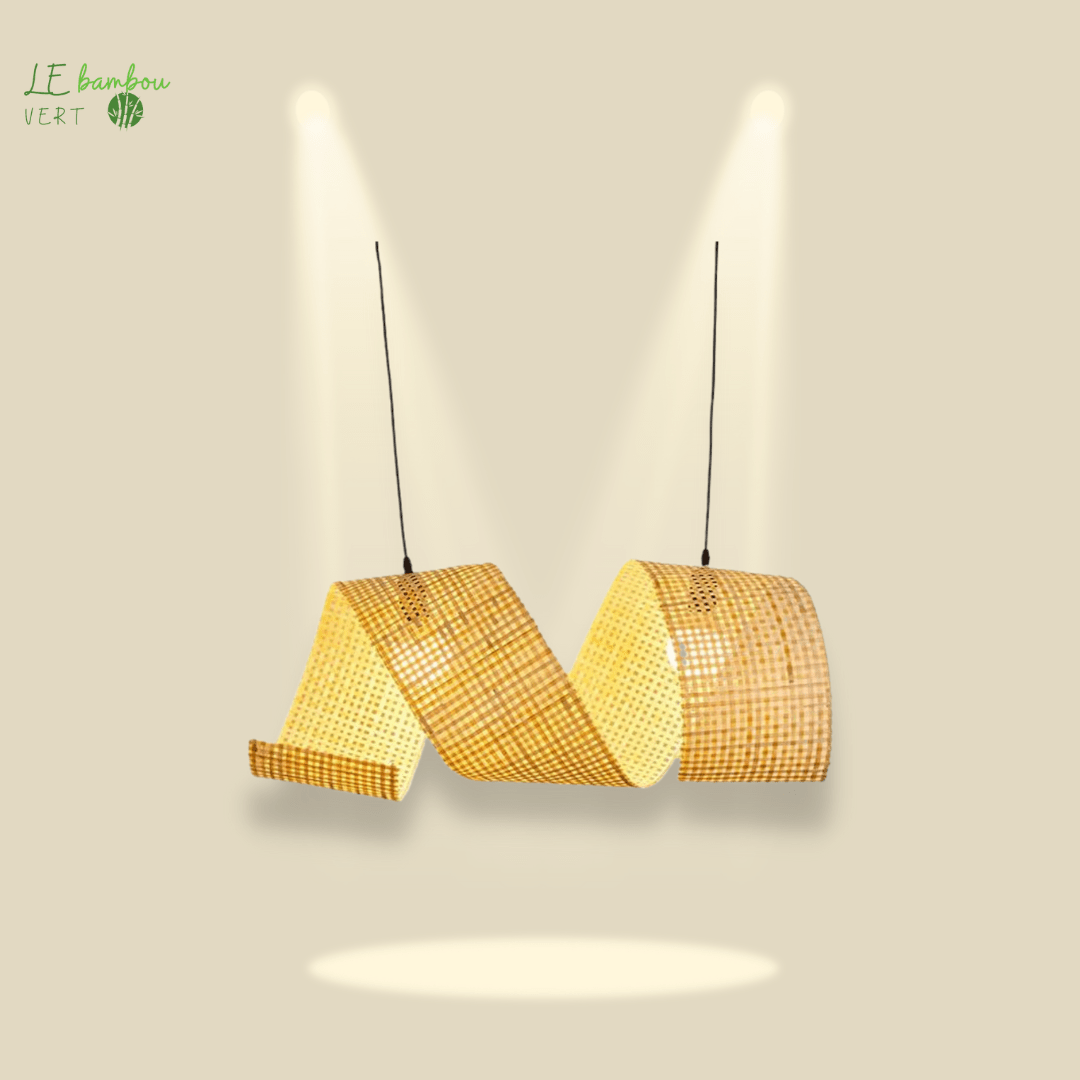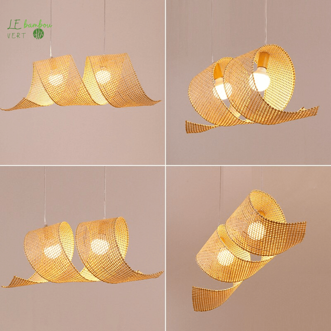 The bamboo chandelier is very practical for lighting a room while giving it a unique spiral style .