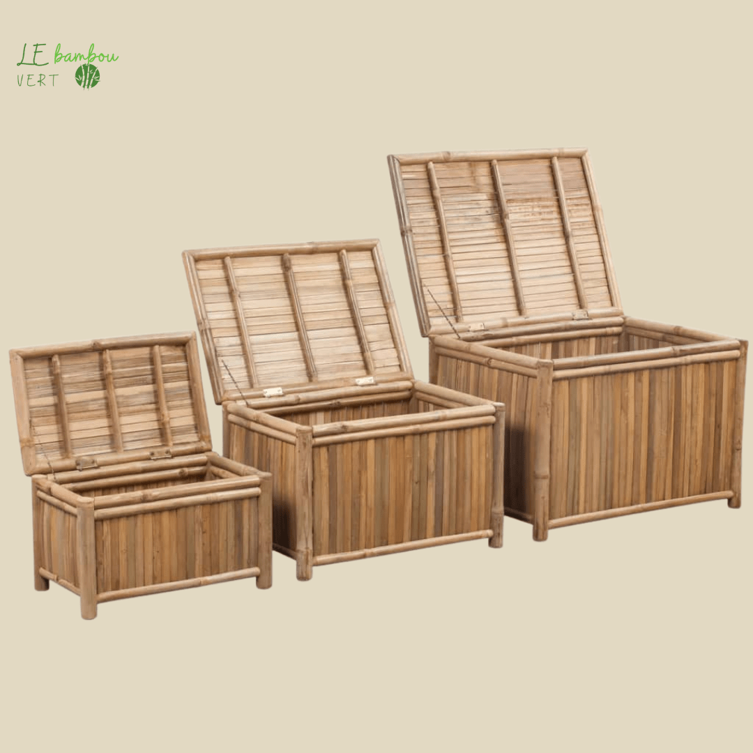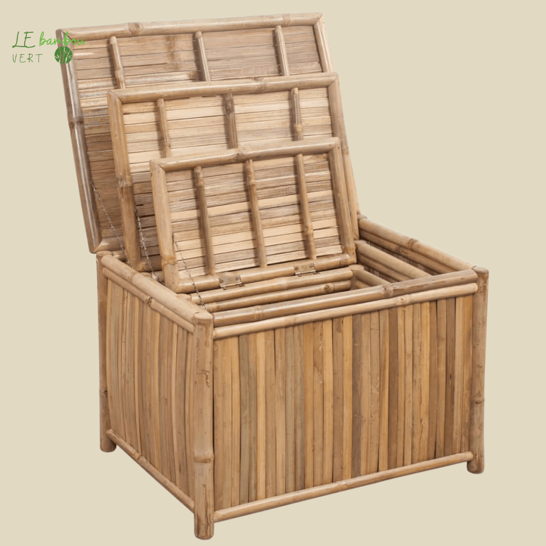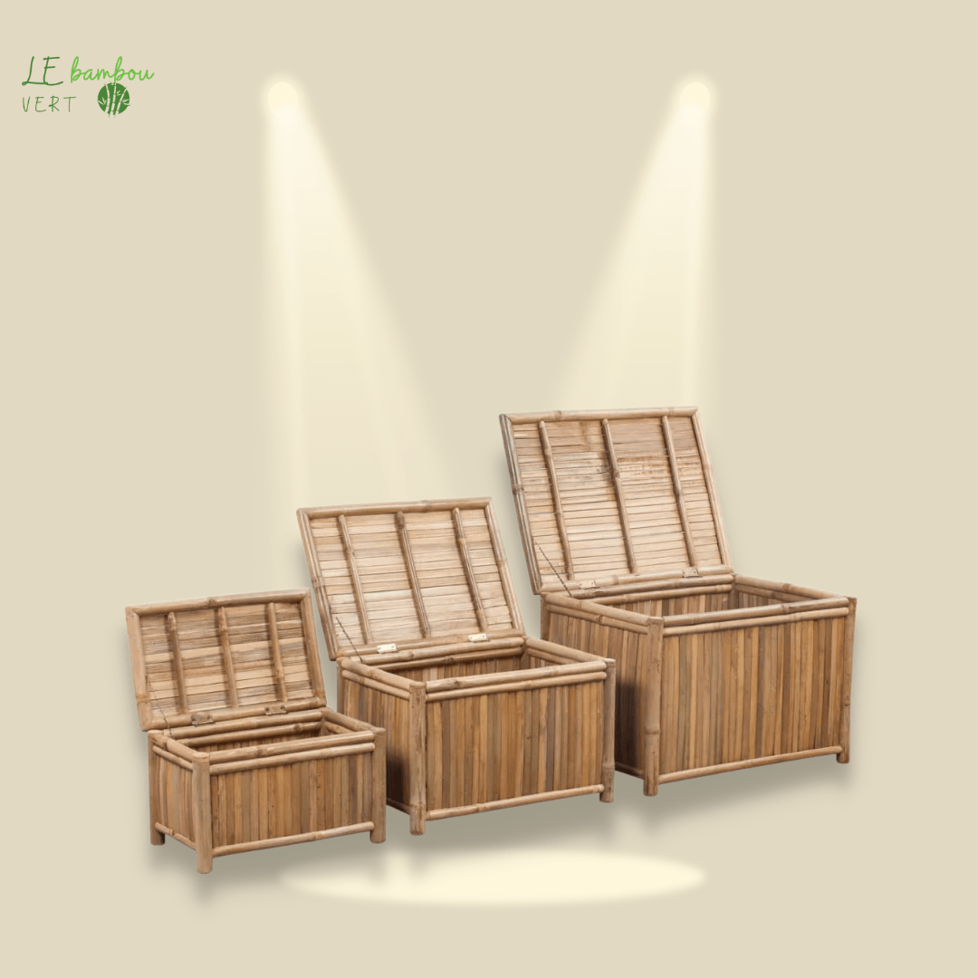 Organisez votre espace avec élégance grâce à notre ensemble de boîtes de rangement en bambou. Idéal pour ranger des couvertures supplémentaires, des bibelots, et bien plus encore, ces paniers vous offrent une solution de rangement polyvalente qui s'adapte à toutes les pièces de votre maison.