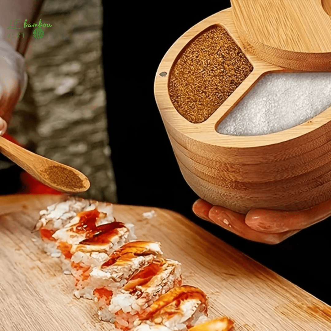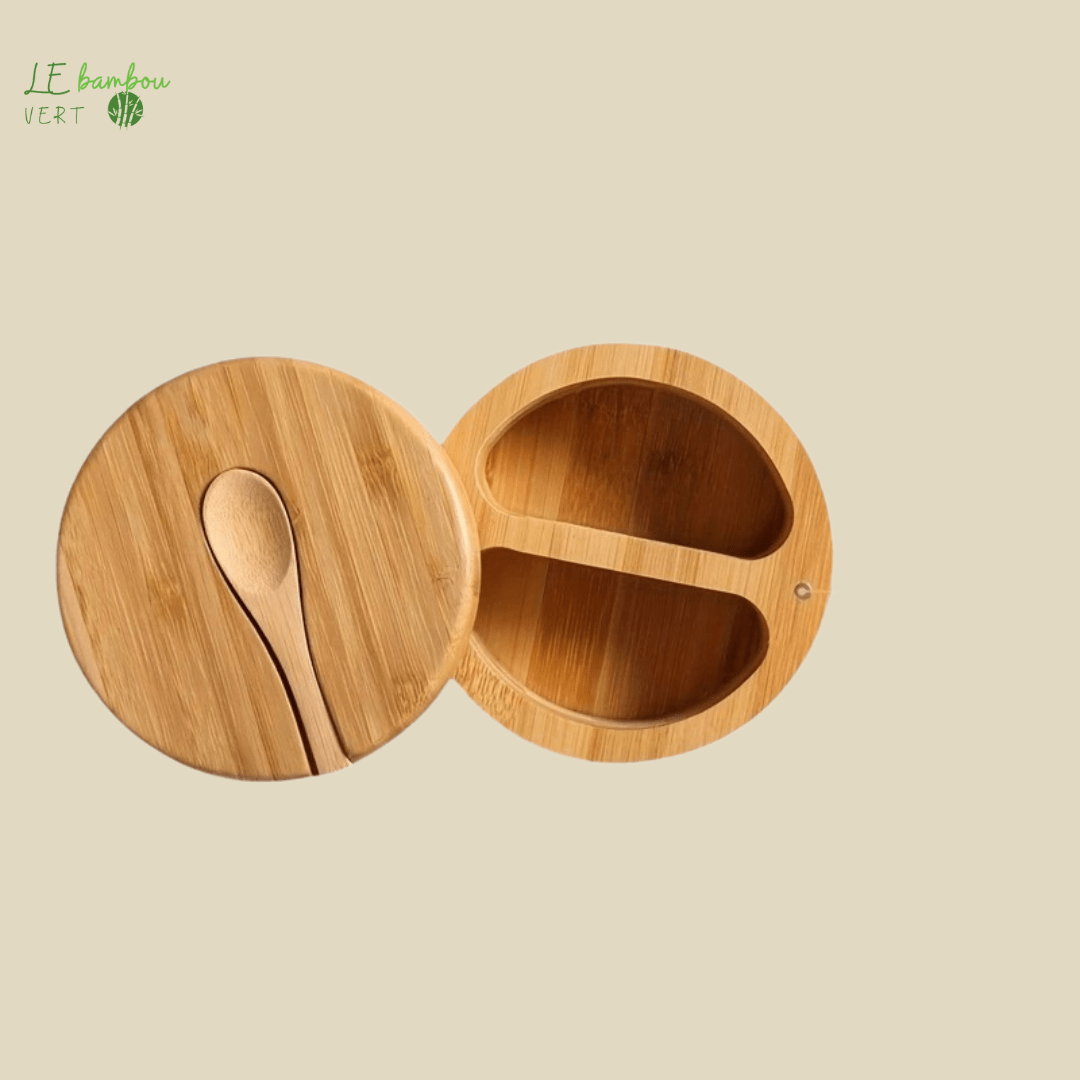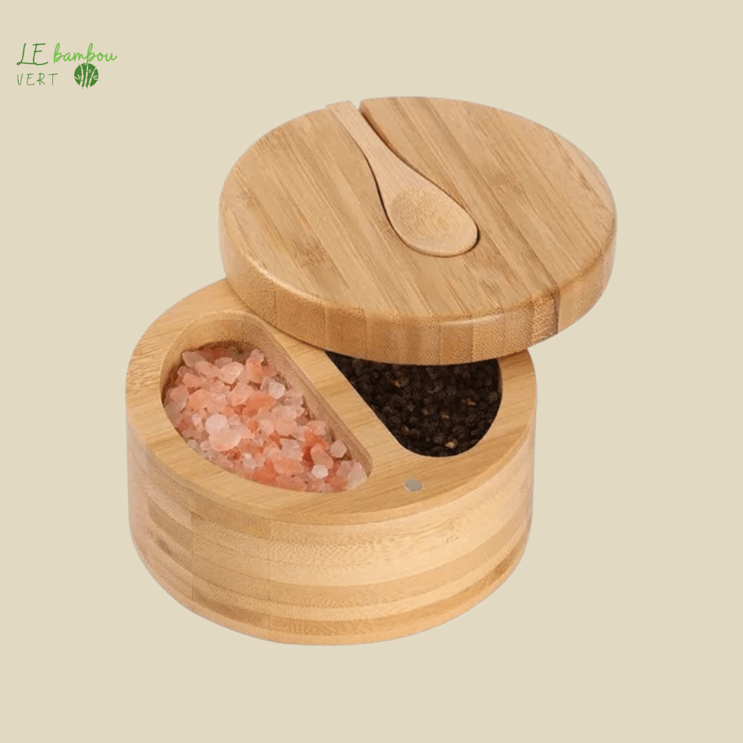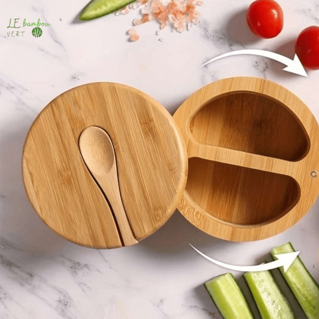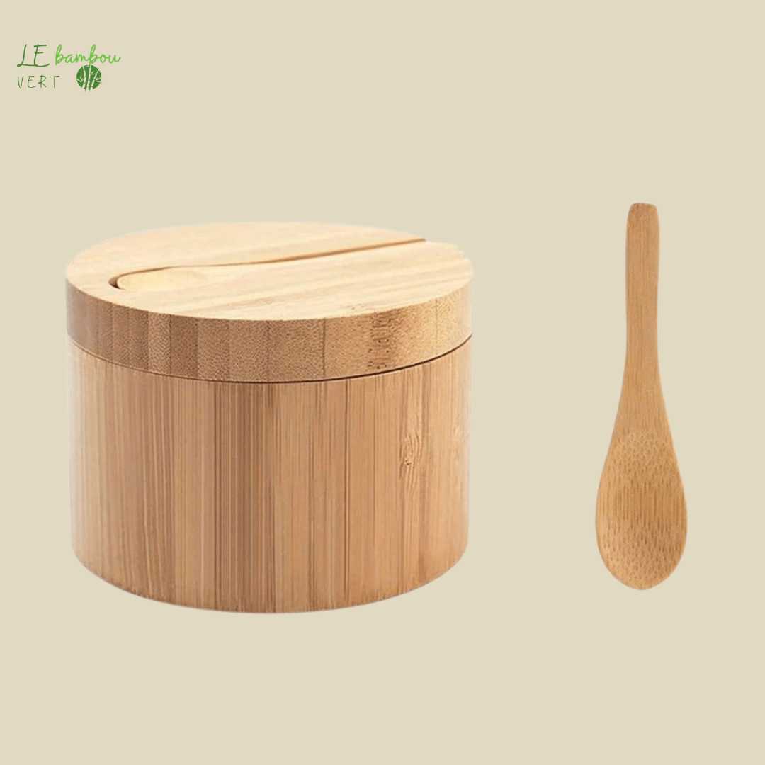 Boîte d'assaisonnement en bambou avec cuillère et couvercle rotatif