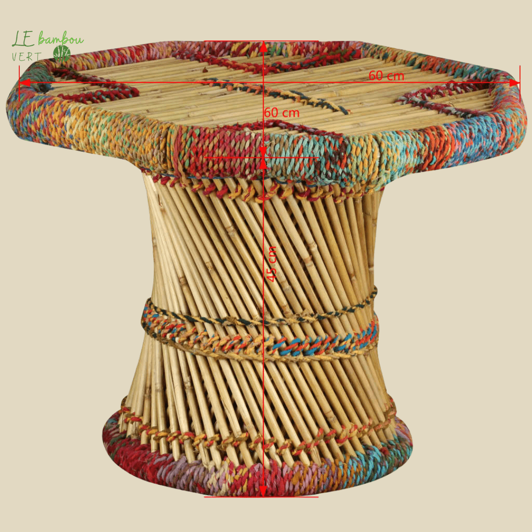 This coffee table is made of bamboo and exudes natural charm. It features a sturdy table top surrounded by beautiful chindi weave details, on which you can place decorative items like fruit baskets, vases or drinks and snacks. The solid iron frame adds to its sturdiness and stability.