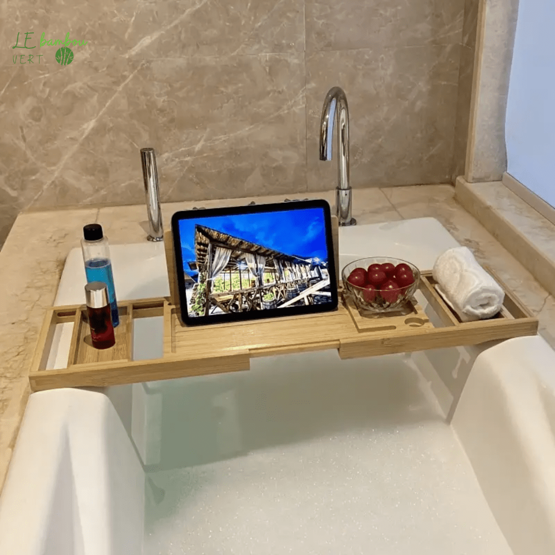Offrez-vous une parenthèse de sérénité avec ce plateau de baignoire en bambou, parfait pour sublimer vos moments de bien-être et enrichir votre espace avec une touche écologique.