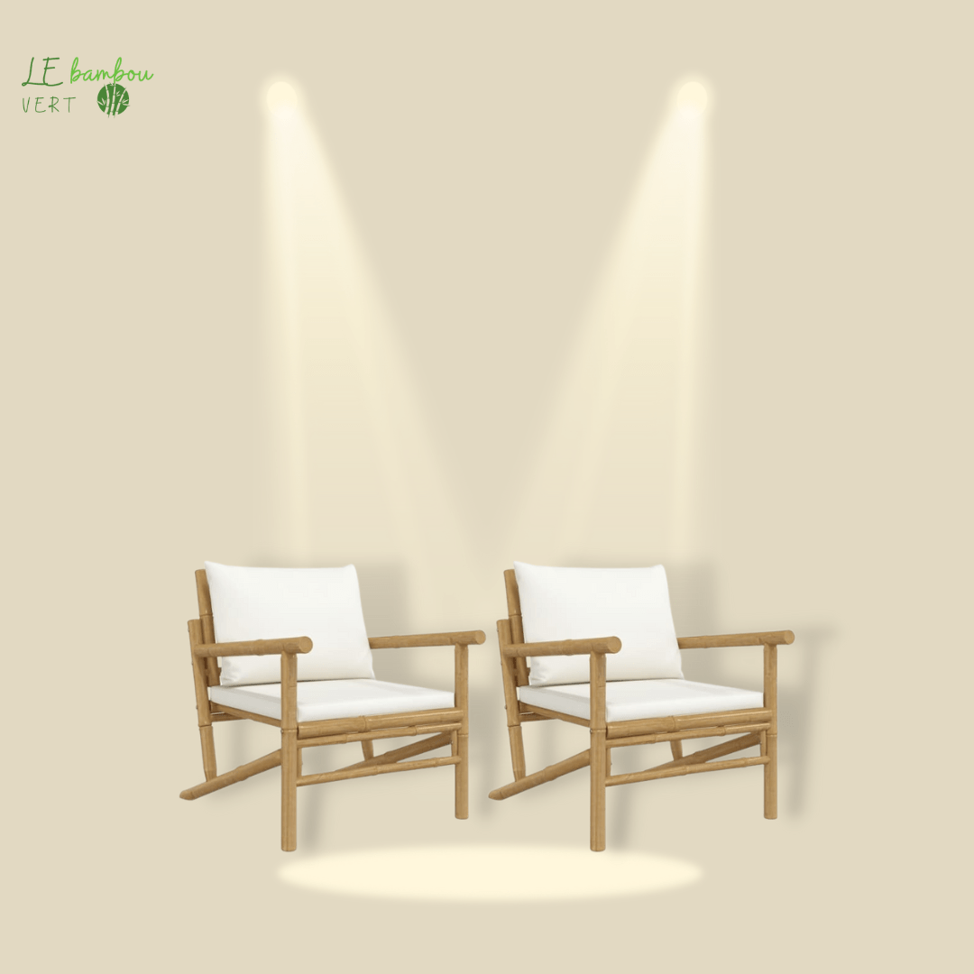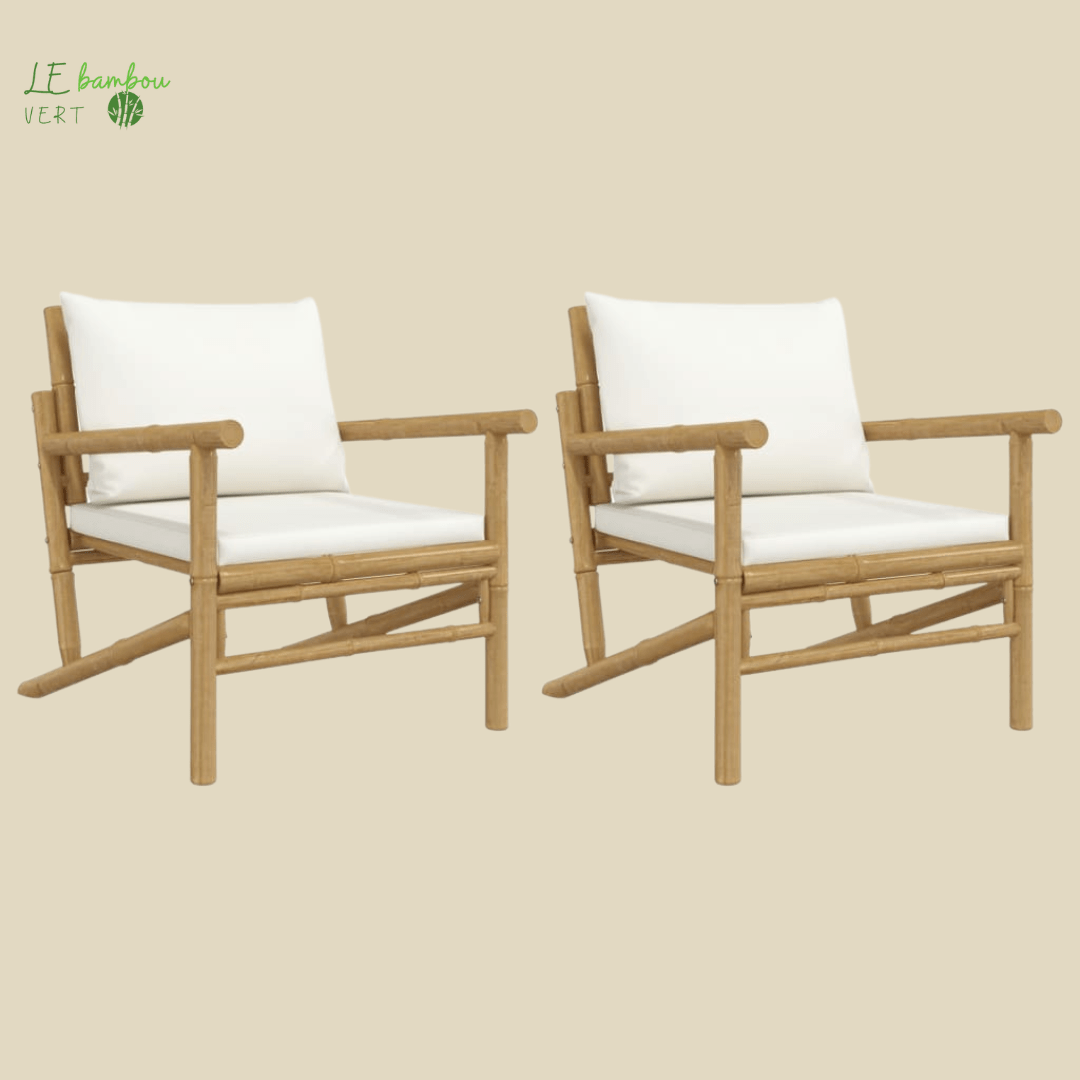Enjoy a cup of coffee or tea in nice weather in your outdoor space on these elegant bamboo garden chairs!