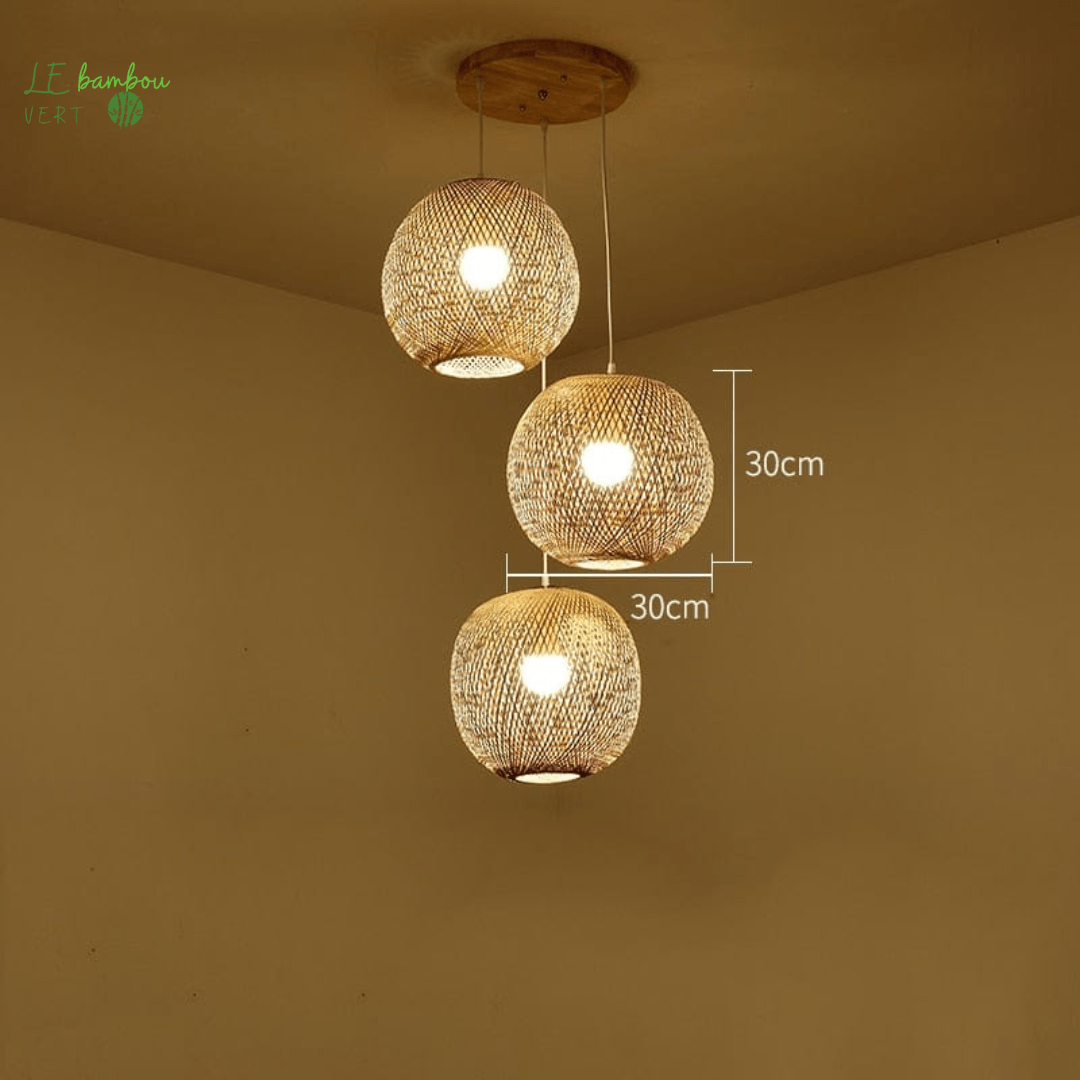 The bamboo chandelier is very practical for lighting a room while giving it a unique 3 round style .