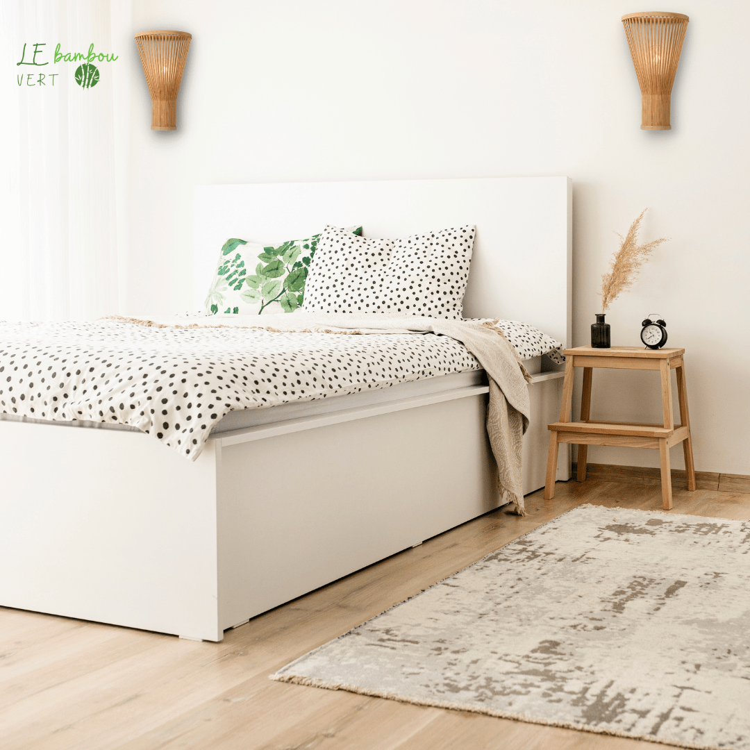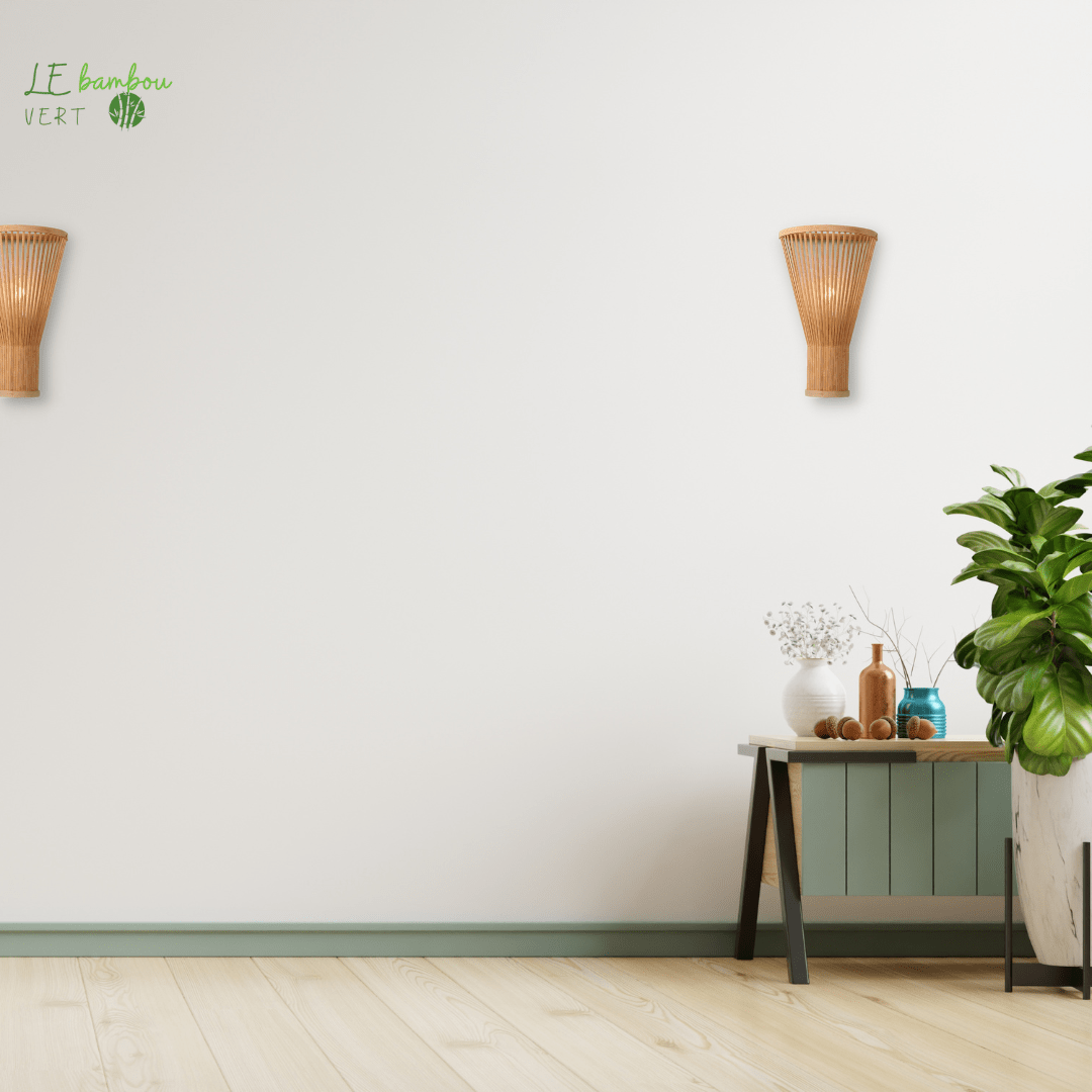 This wall light in natural bamboo is the perfect accessory for those looking to add a touch of nature and simplicity to their home. Made from high quality materials, this wall lamp is not only durable but also environmentally friendly . Its elegant and minimalist design will fit perfectly into all styles of interior decoration, whether it is a modern or more traditional interior.
