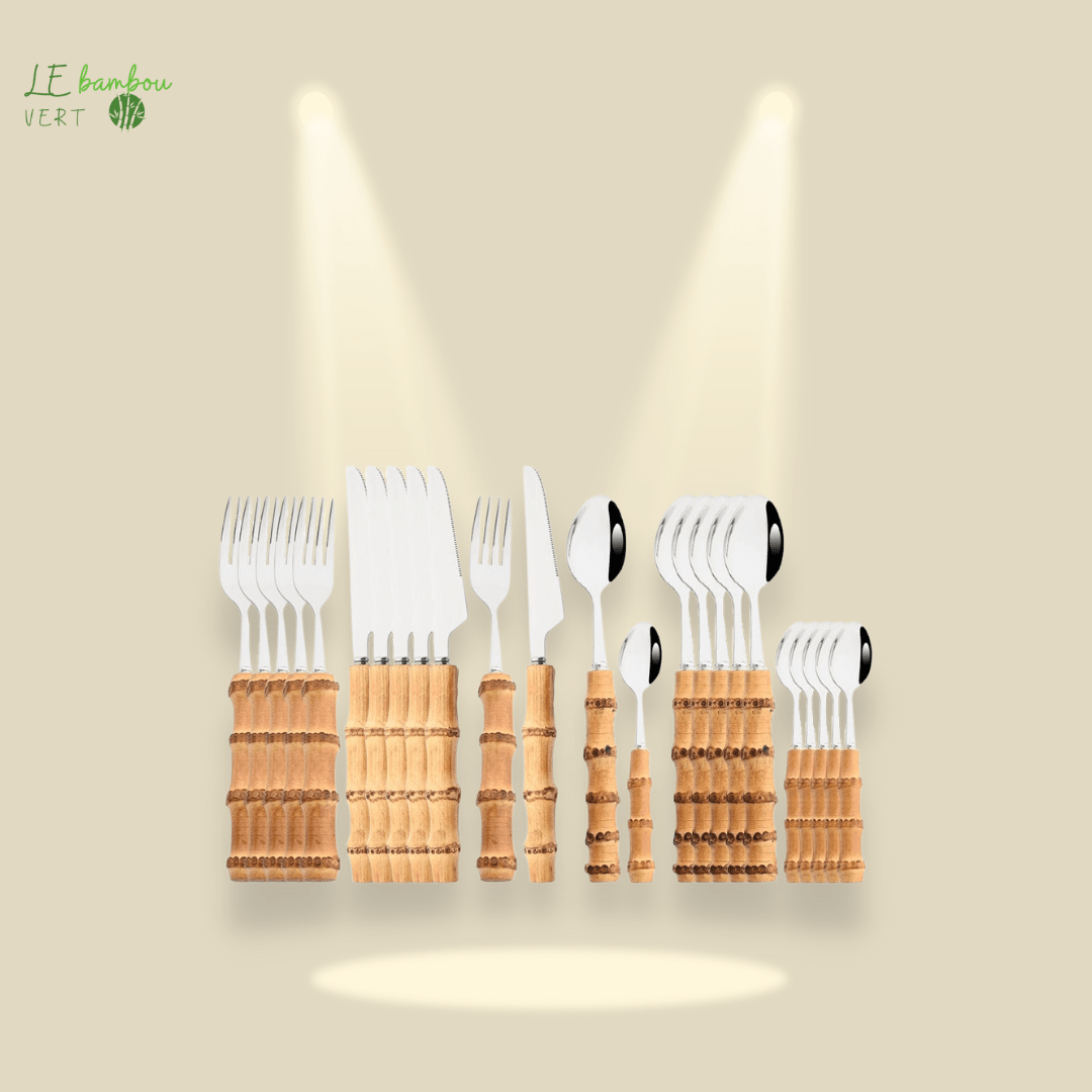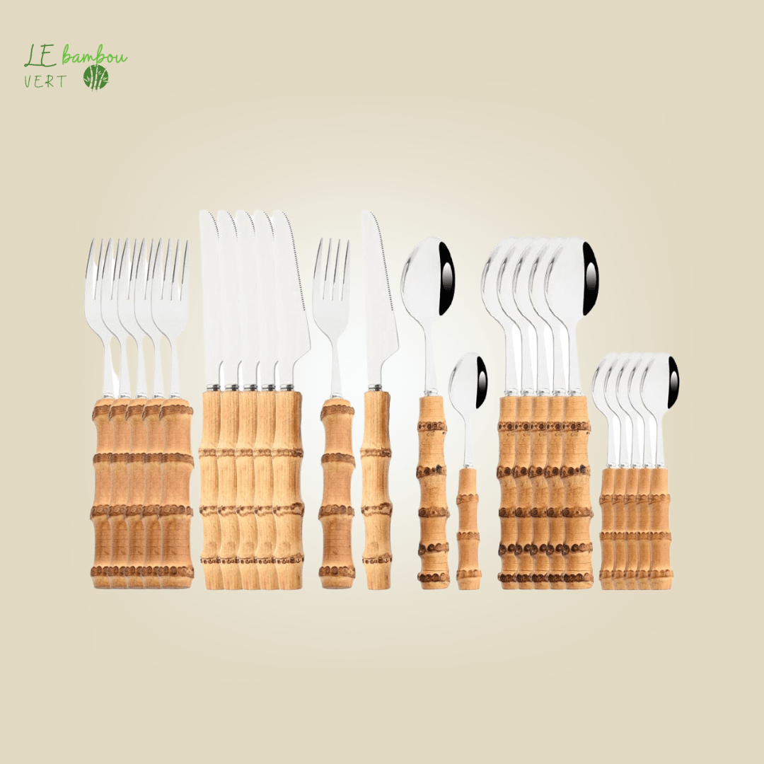 Cutlery set in bamboo and stainless steel 24pcs silver