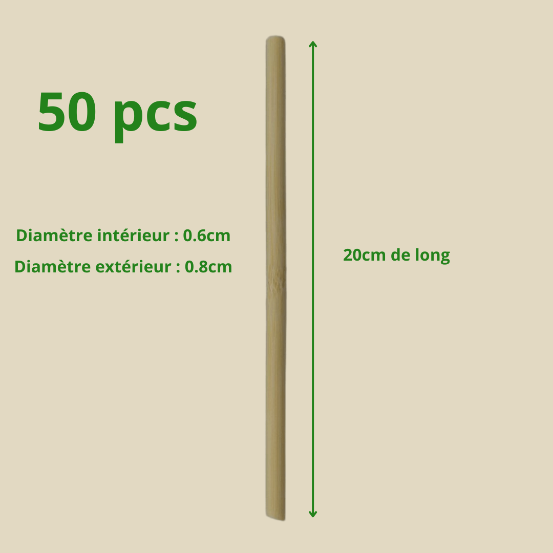 Discover our reusable natural bamboo straws - Pack of 50 pieces