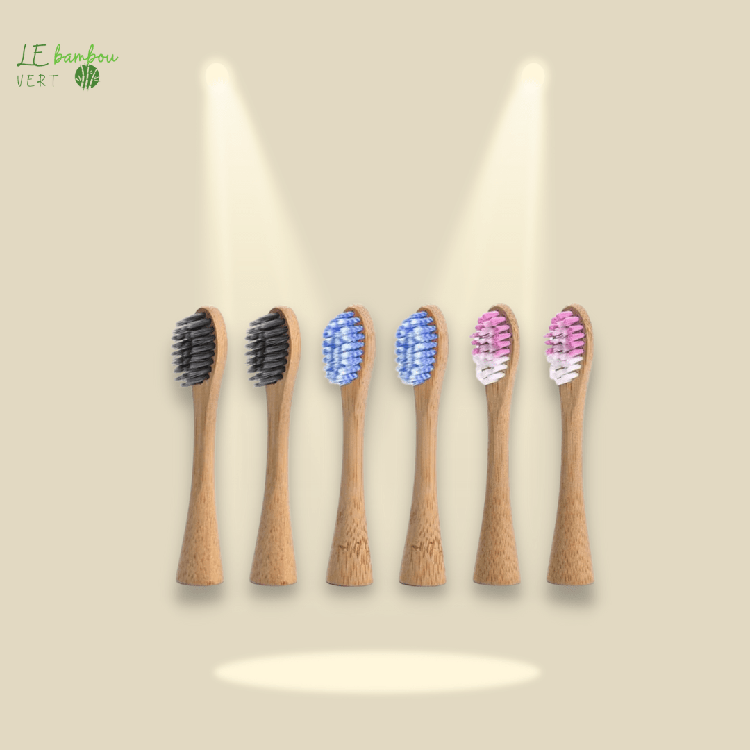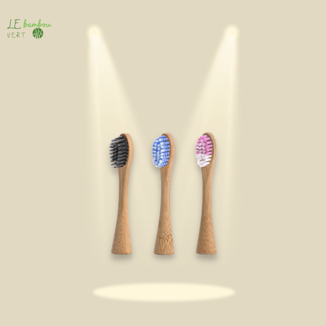 Optez pour notre kit de 3 têtes de brosse à dent en bambou pour un sourire éclatant tout en contribuant à la préservation de notre planète. Rejoignez-nous dans notre engagement pour un environnement plus propre.