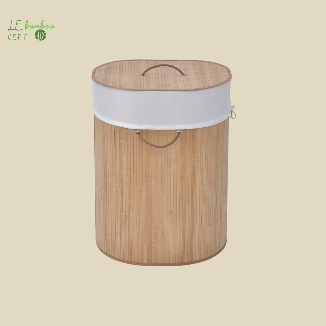 Le Panier à linge ovale en bambou naturel est un accessoire d'ameublement élégant qui apporte à la salle de bain à la fois praticité et style. Ce panier, offre une solution de rangement pratique pour dissimuler le linge sale tout en ajoutant une touche de sophistication à l'espace.