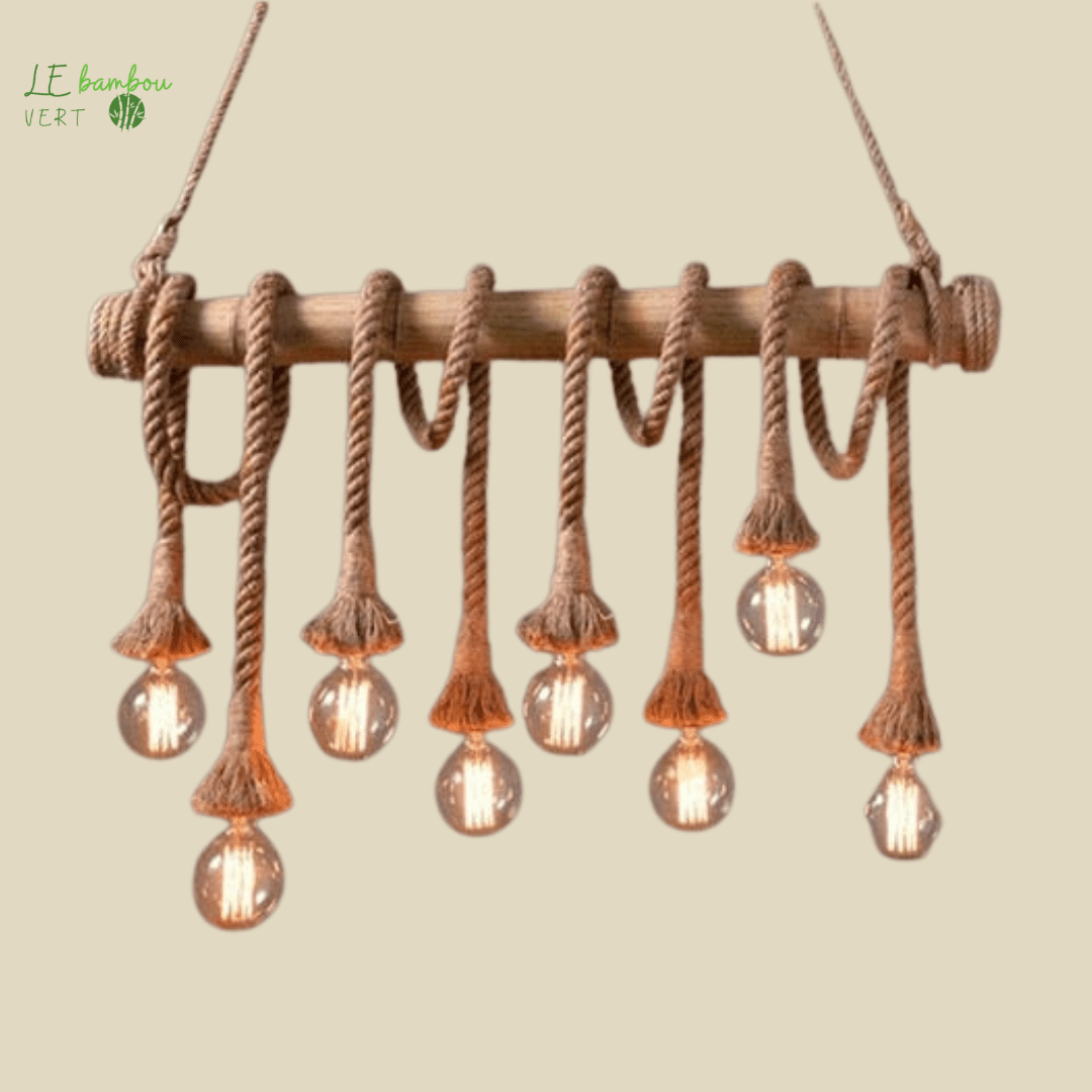 La suspension en bambou 8 sources lumineuses est très pratique pour éclairer une pièce tout en lui donnant un style unique étambot.