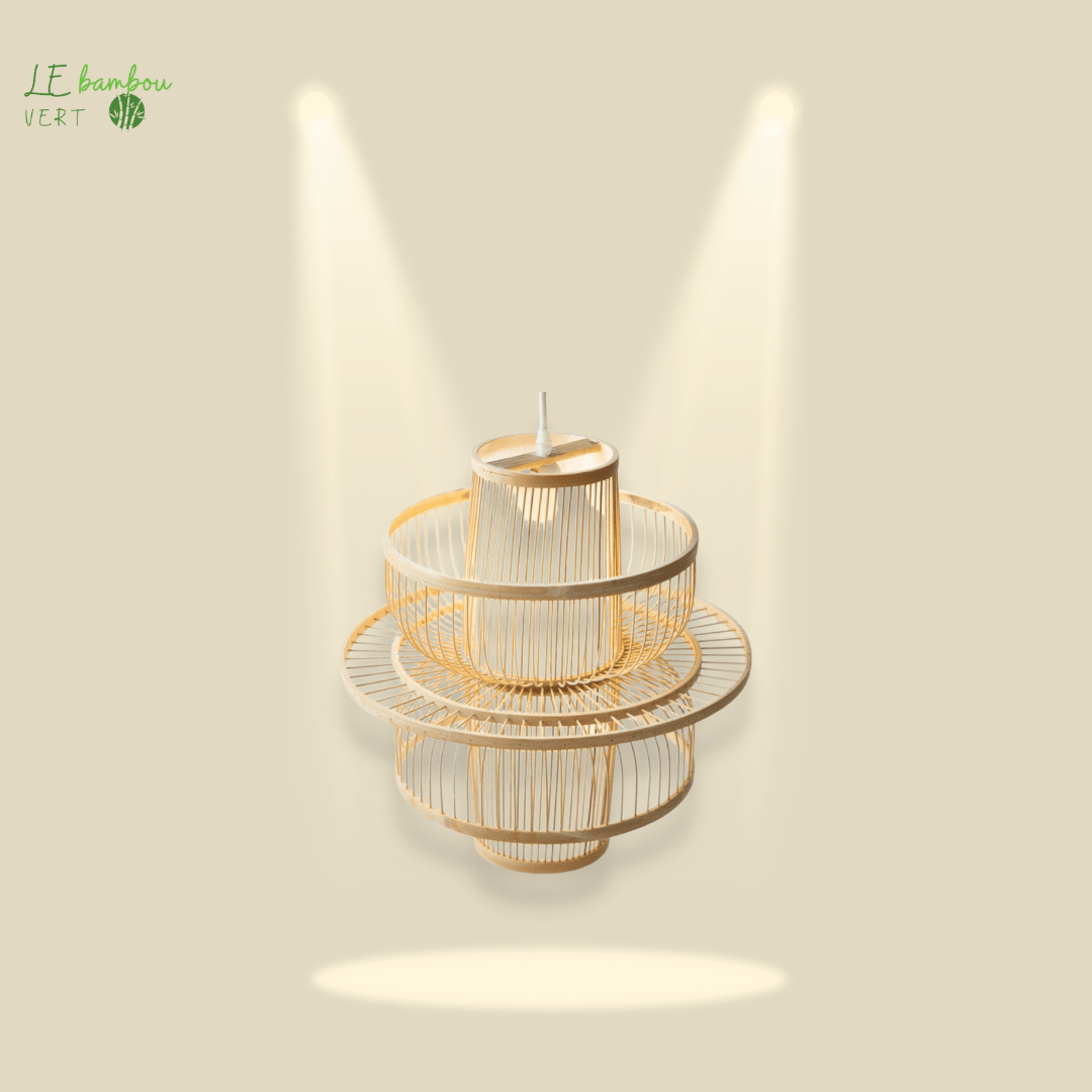 Offrez-vous un lustre en bambou élégant et durable pour pièce à vivre, cuisine ou salle à manger.