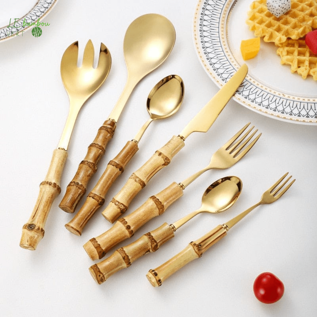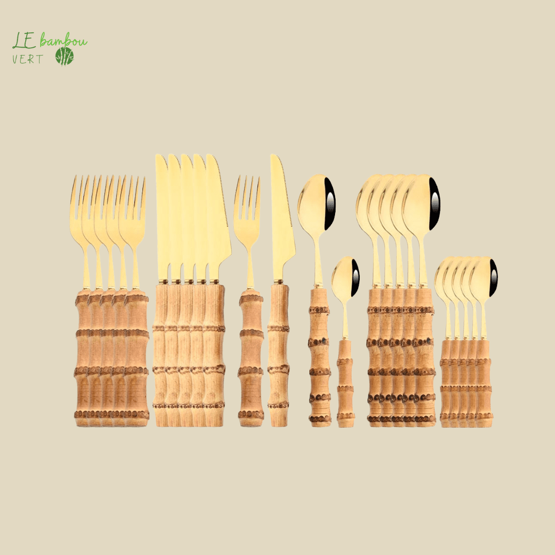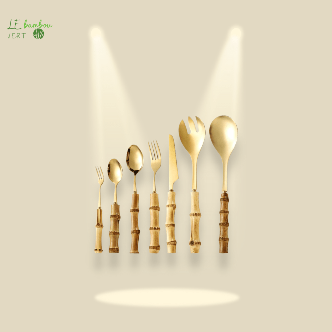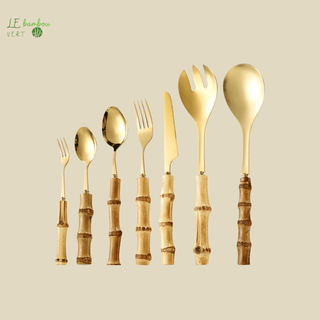 Émerveillez-vous avec cette ménagère spéciale en bambou naturel et inoxydable doré!